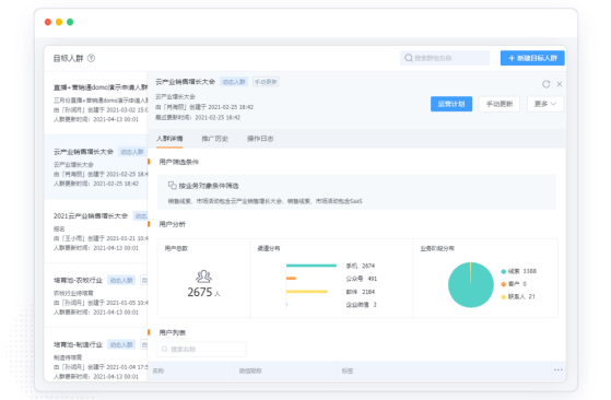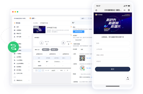 公开课、新品发布会、沙龙会等在线直播活动,覆盖邀约推广、互动交流、直播数据分析的全流程管理。